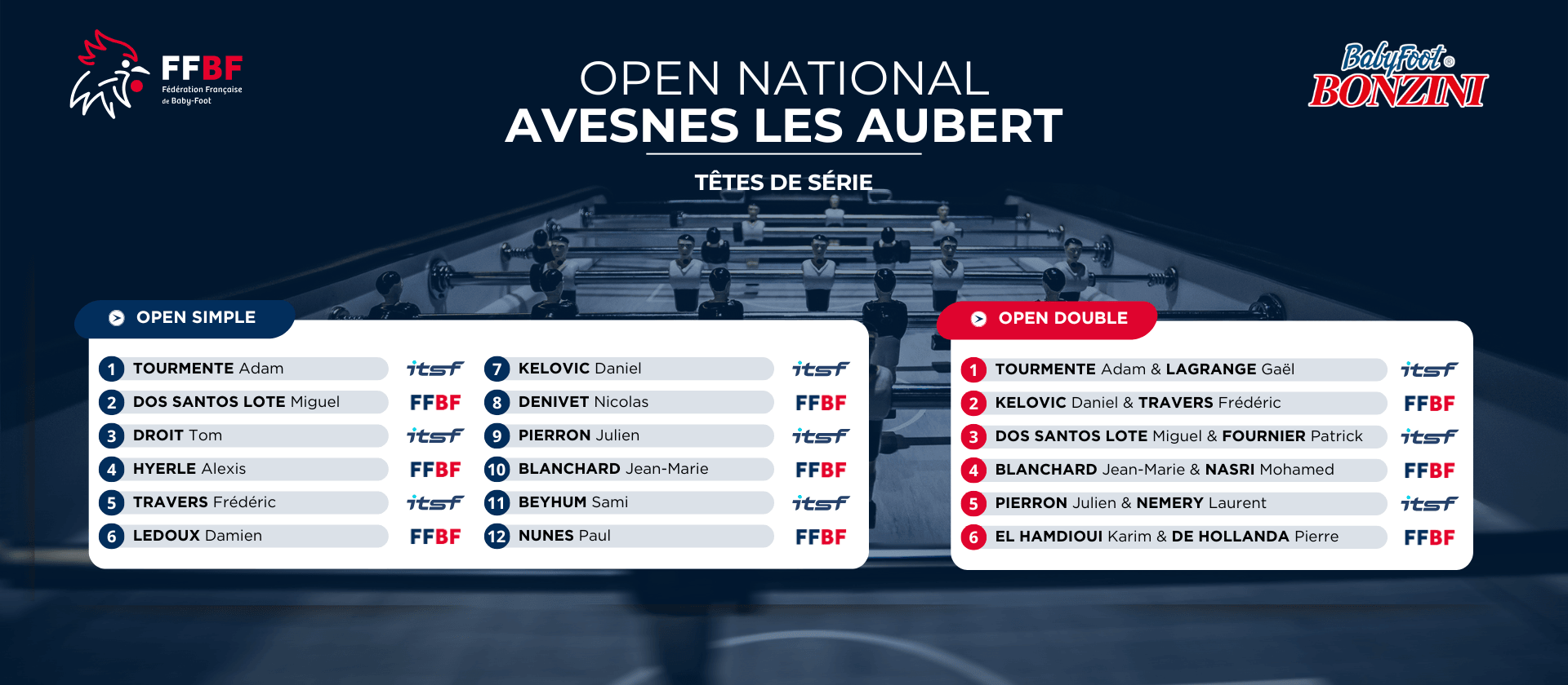 Les Têtes de Série de l'Open National de Avesnes Les Aubert 2026