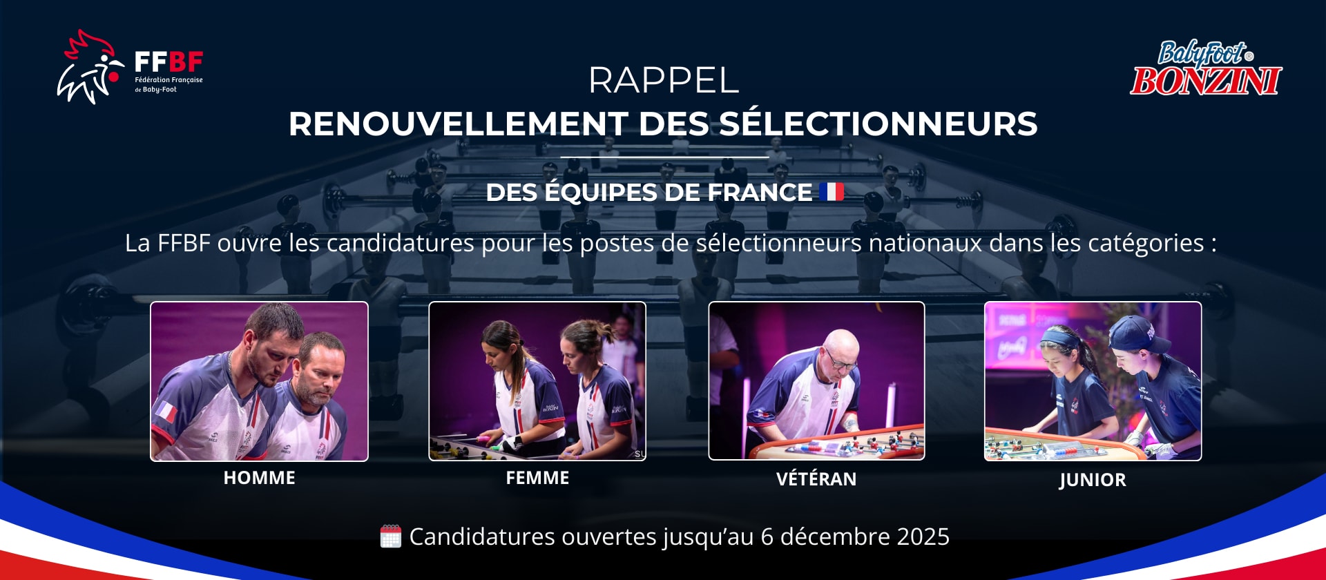 La FFBF rappelle que les candidatures sont toujours ouvertes pour les postes de sélectionneurs nationaux dans les catégories : Homme, Femme, Vétéran et Junior.
