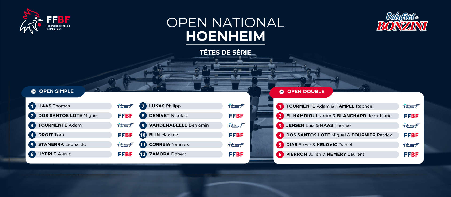 Nous sommes heureux de vous annoncer les têtes de série pour les compétitions Open Simple et Open Double de l'Open National de Montreuil sur Mer classé ITSF 500 !